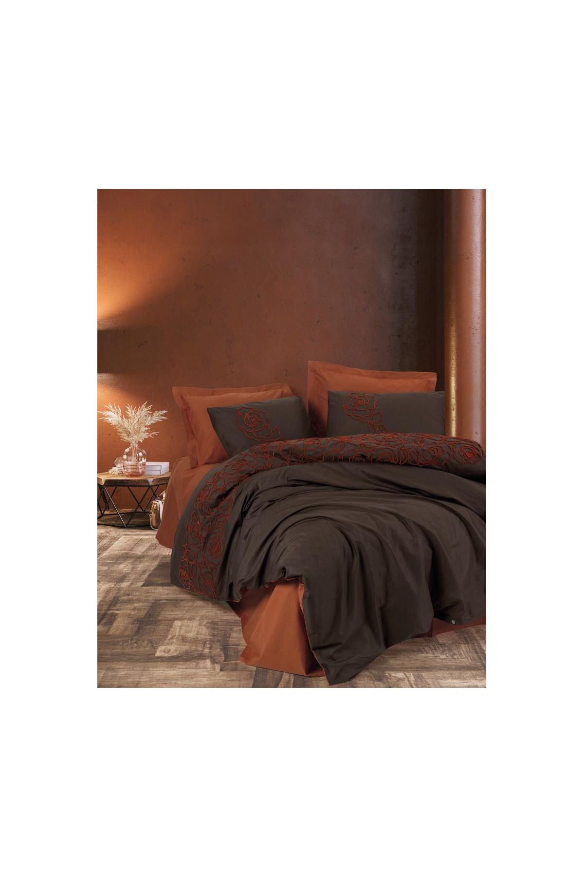 Ranforce Çift Kişilik Nevresim Takımı Rosen Kiremit