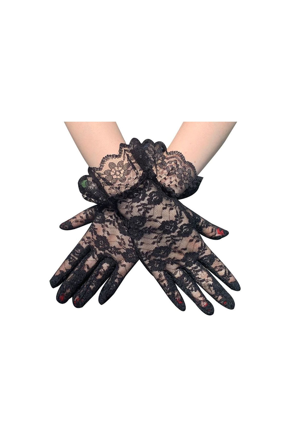Güpürlü Bilek Boyu Siyah Renk Dantel Eldiven Yetişkin