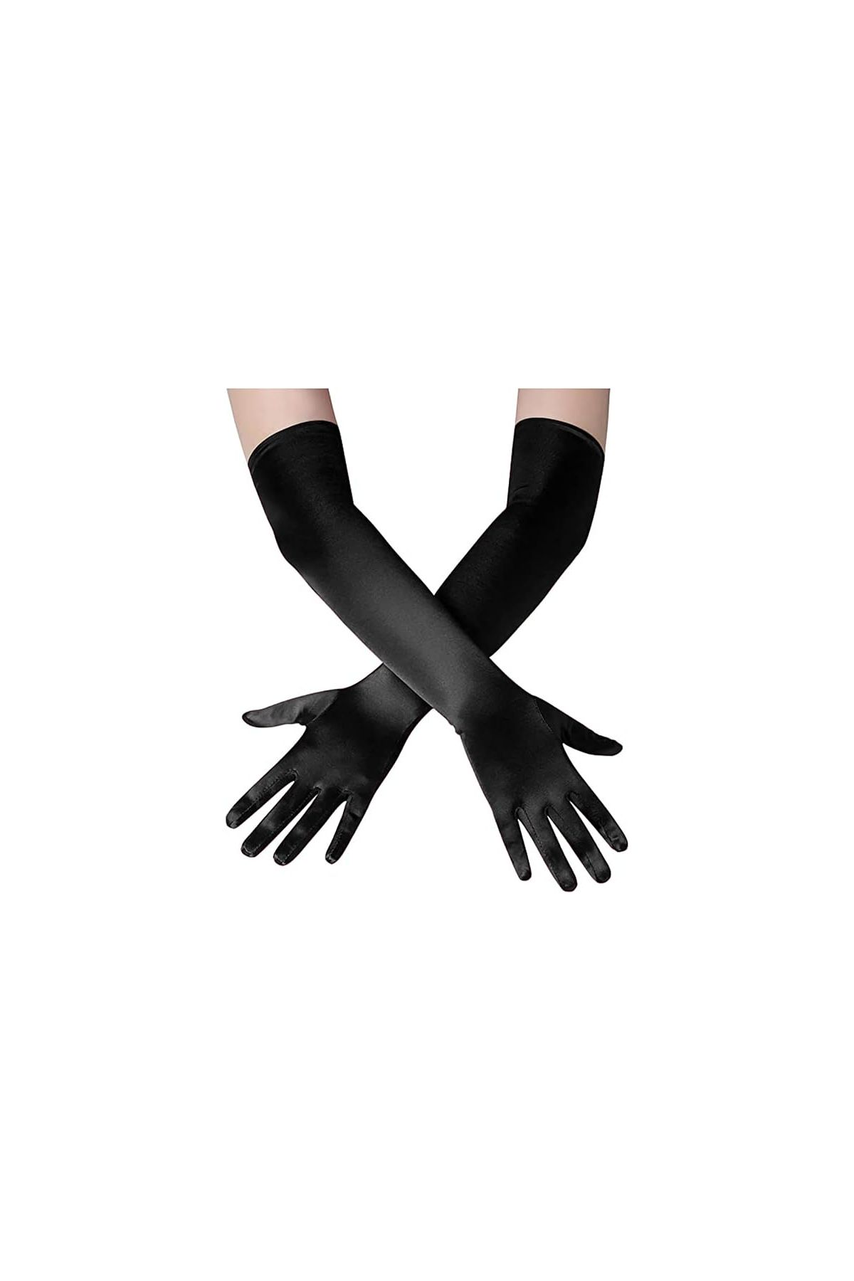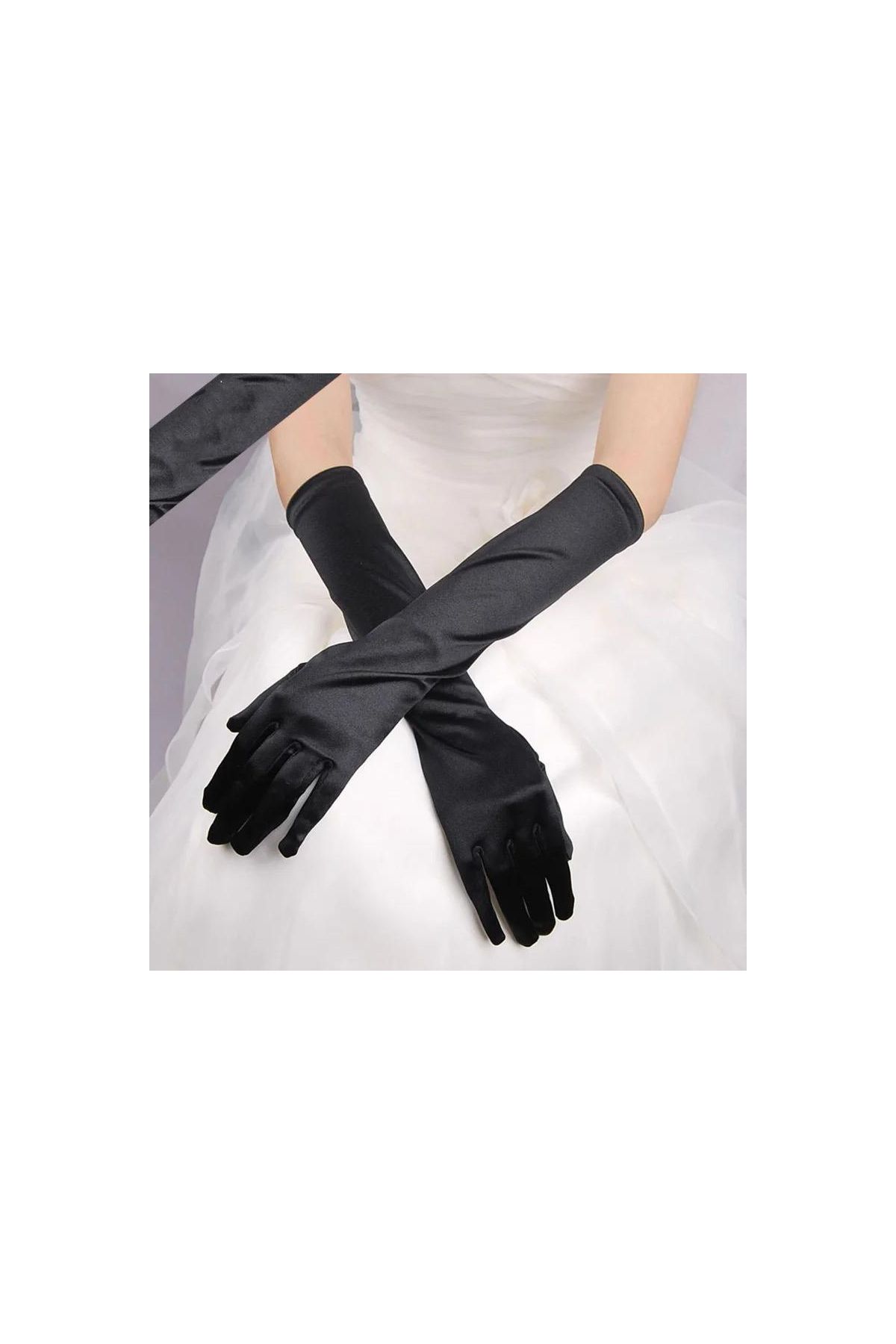 Uzun Boy Ekstra Parlak Saten Eldiven Siyah Renk ( )