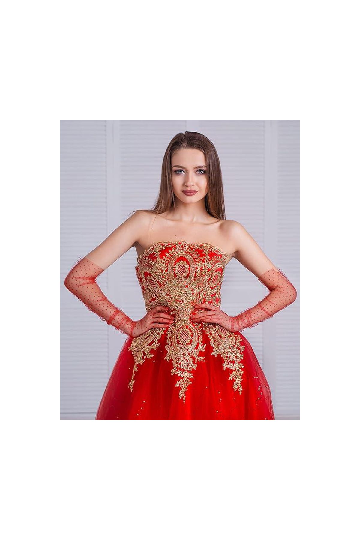 Uzun Boy Kırmızı Puantiyeli Kırmızı Renk Tül Eldiven