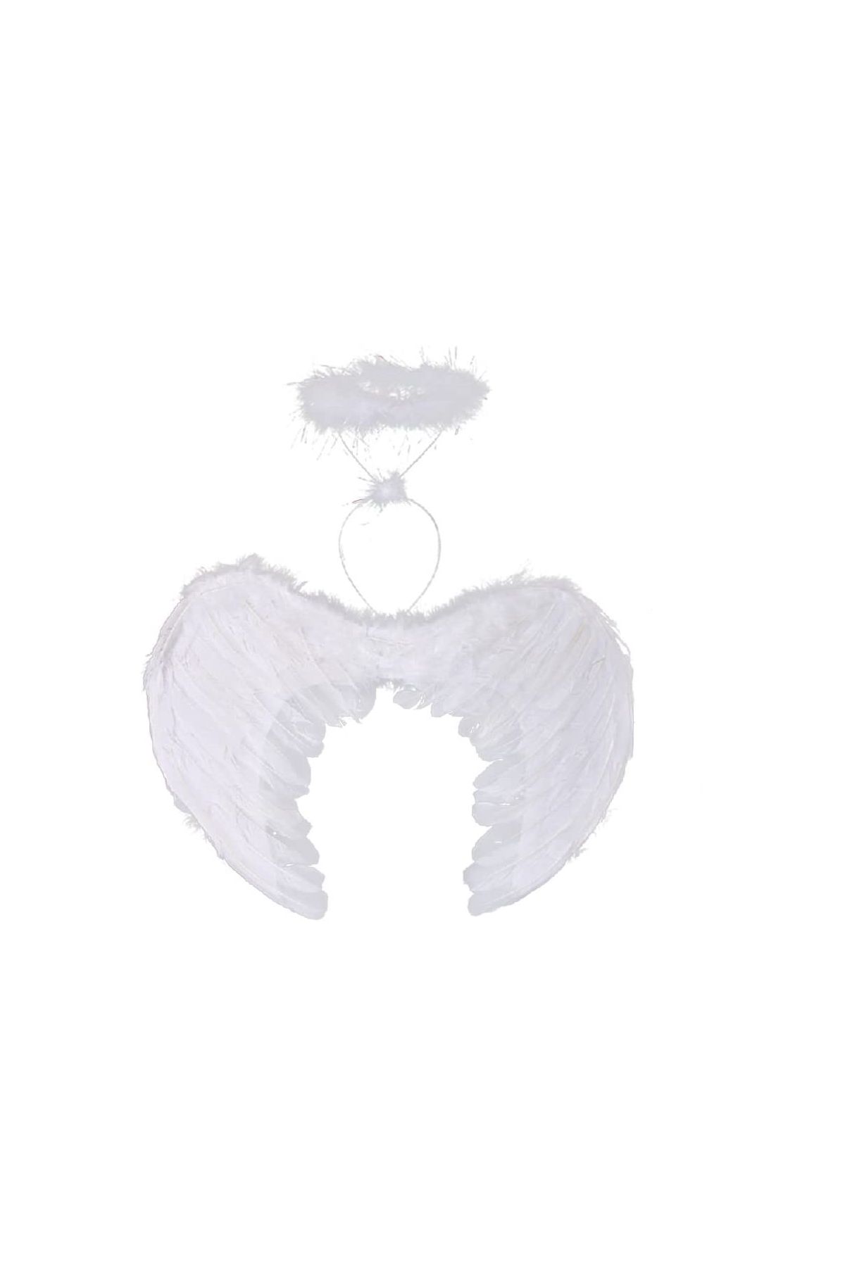 Beyaz Renkli Orta Çocuk Boy Melek Kanadı ve Tacı 50x35 cm ( )