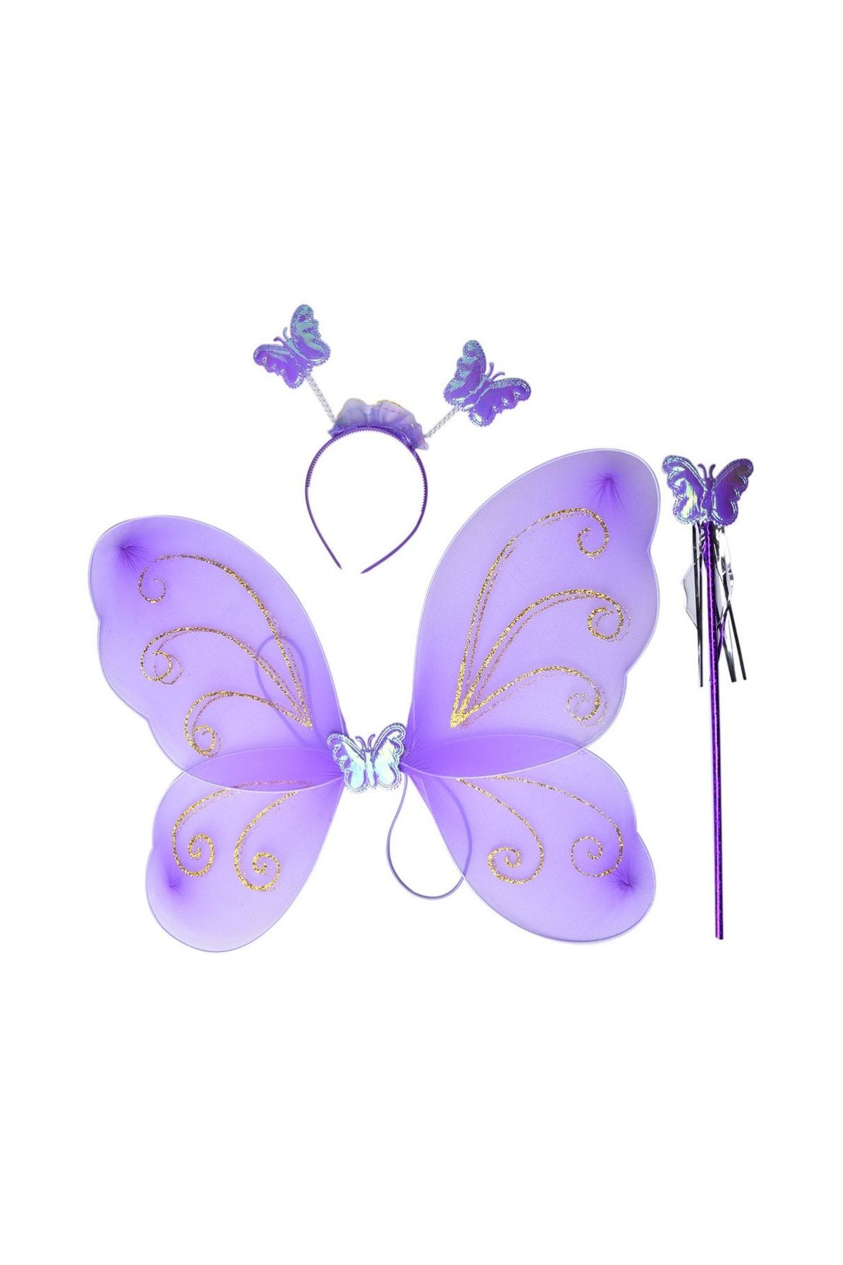 Lila Renk Kelebek Kanadı Tacı ve Sopası 50x37 cm
