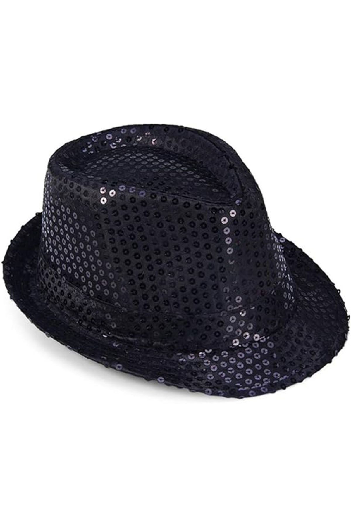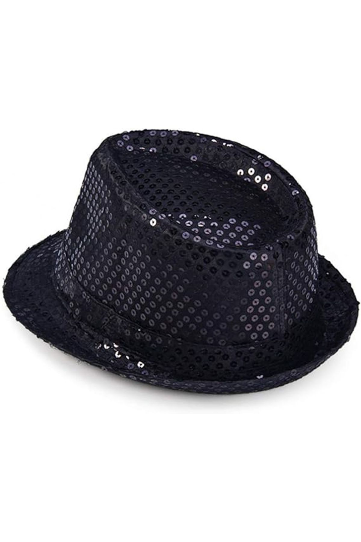 Çocuk Boy Siyah Payetli Şapka Gösteri Şapkası Michael Jackson Şapkası 54 Numara