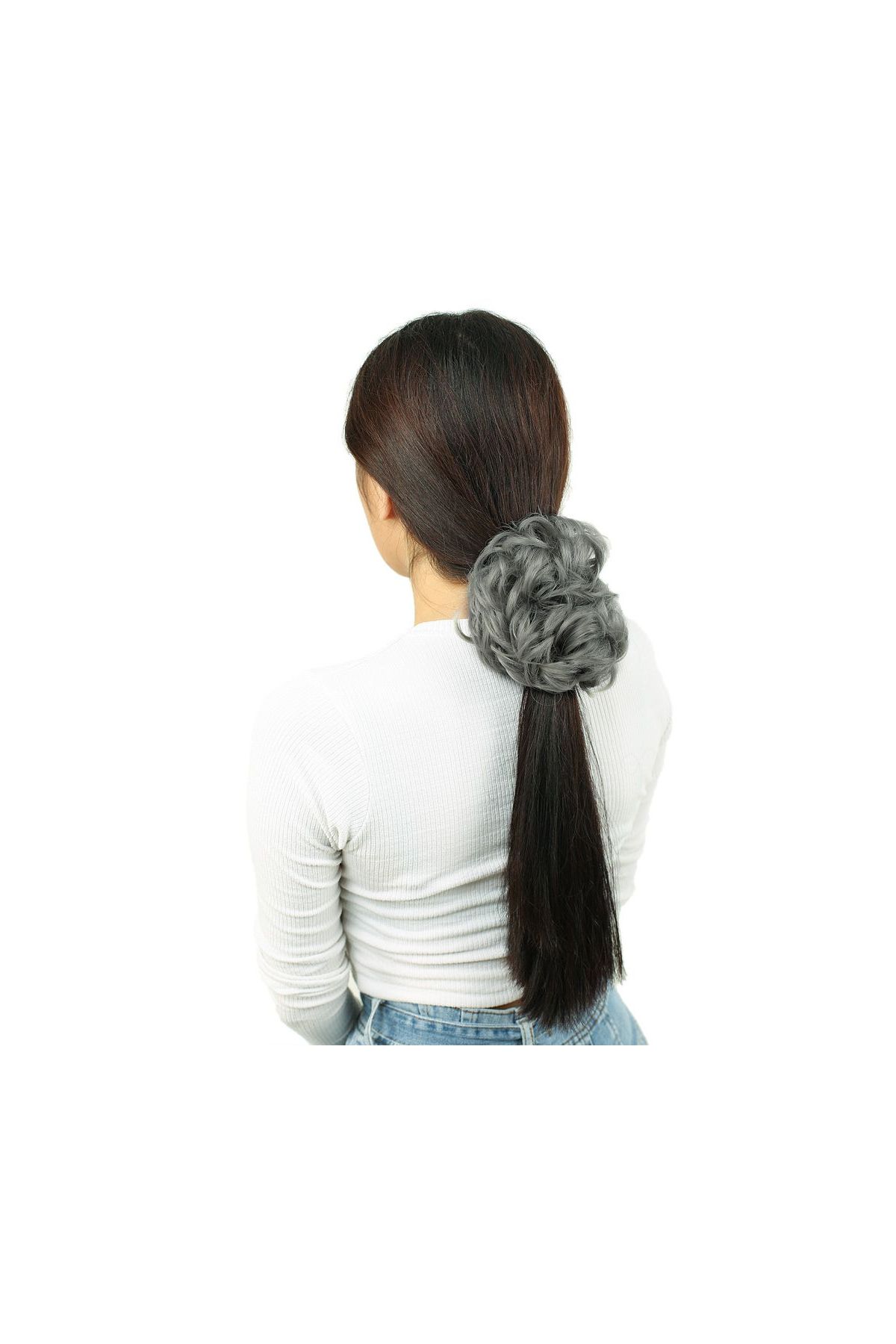 Yoğun Saçlı Lastikli Topuz Toka - Gri