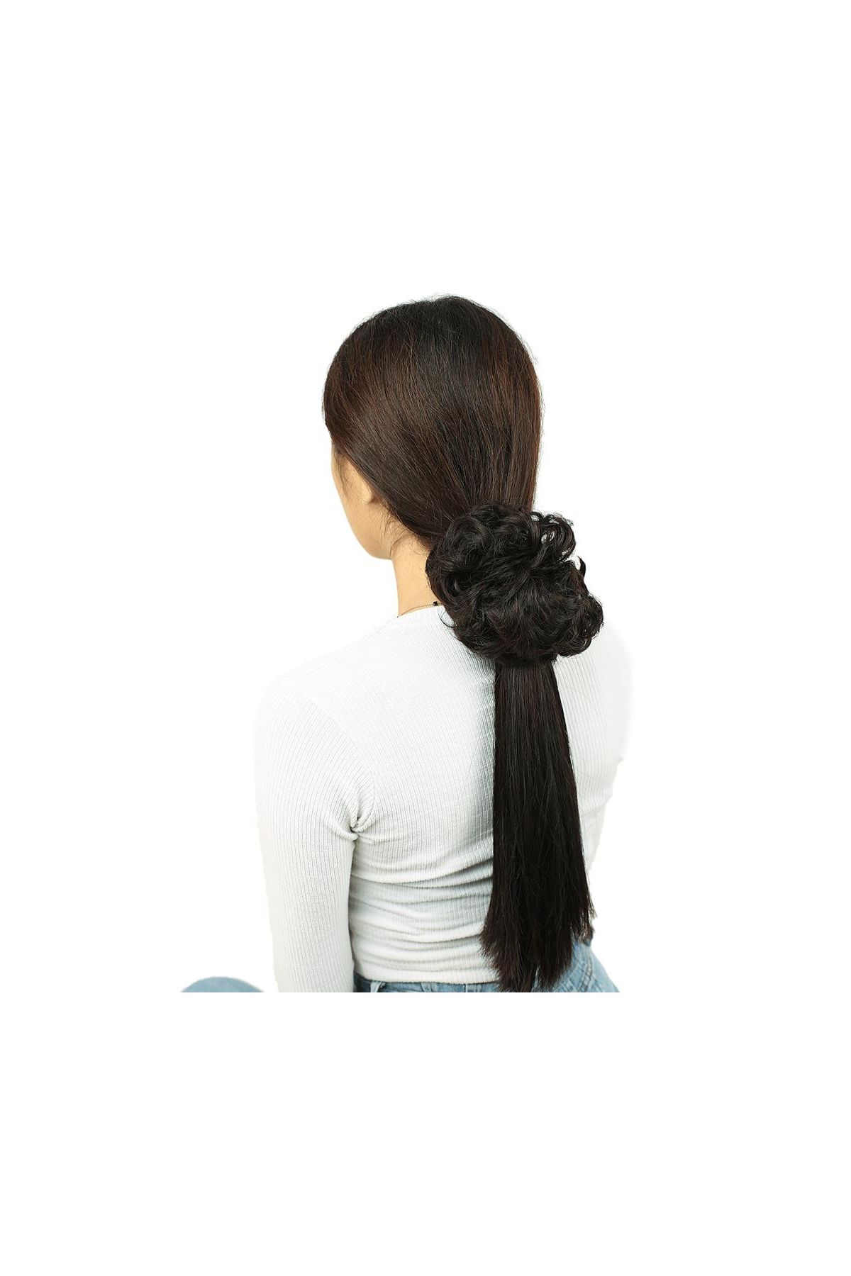 Yoğun Saçlı Lastikli Topuz Toka - Kahverengi