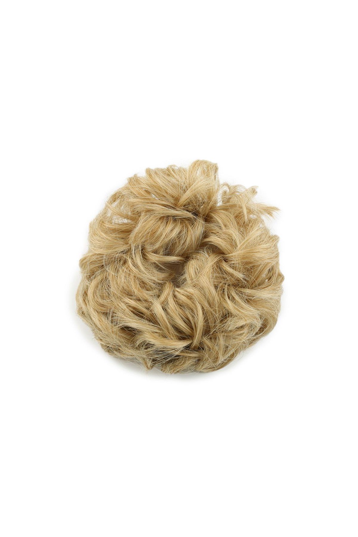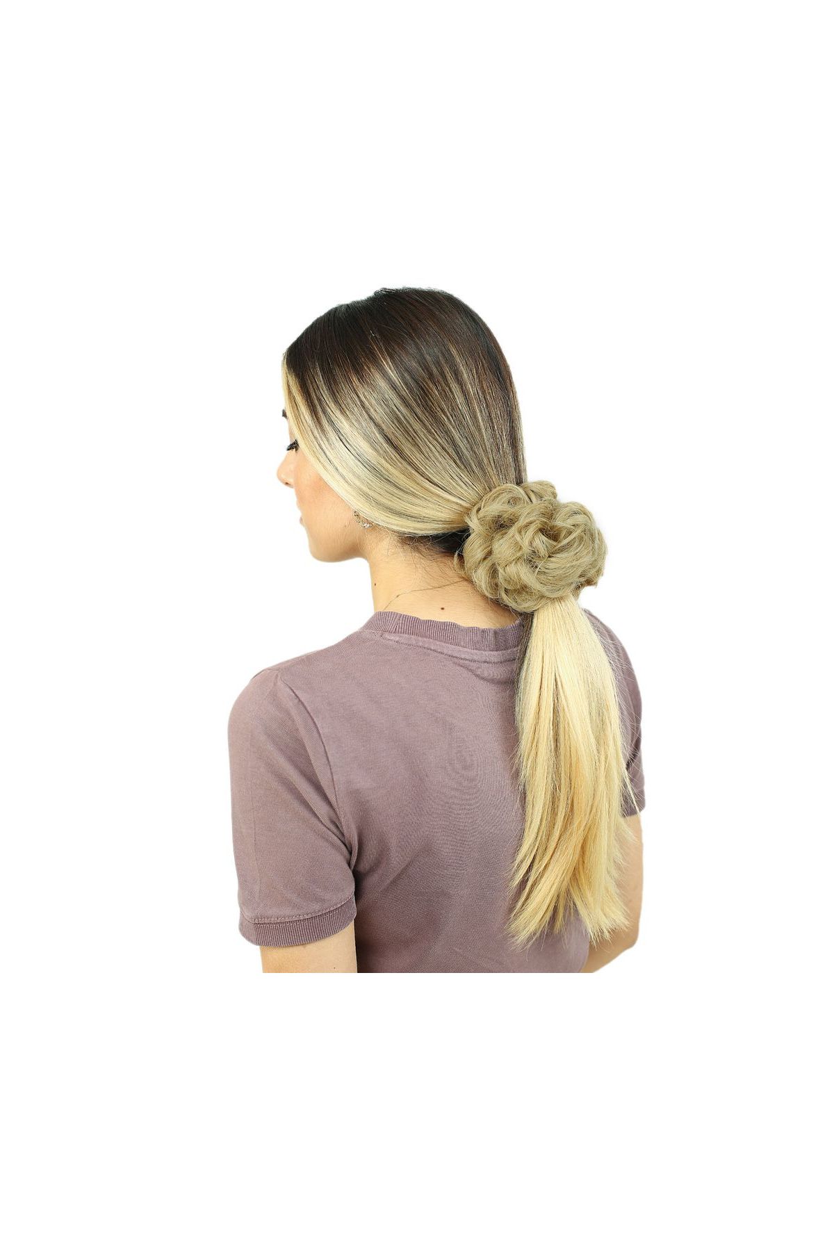 Yoğun Saçlı Lastikli Topuz Toka - Karamel Platin Röfleli