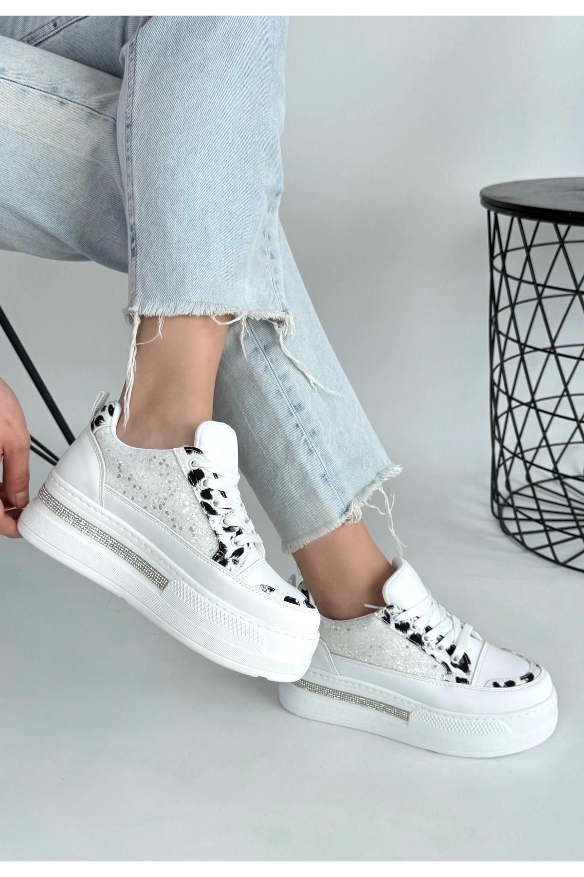 Lawin Beyaz Cilt Beyaz Simli Bağcıklı Spor Ayakkabı
