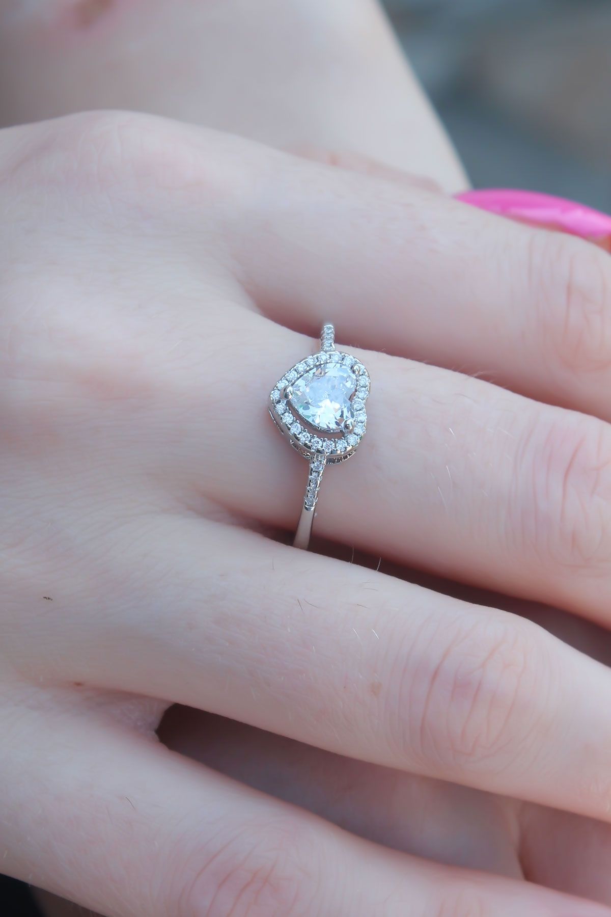 Gümüş Renk Zirkon Taşlı Kalp Model Charm Pirinç Kadın Yüzük - TJ-BYK2655