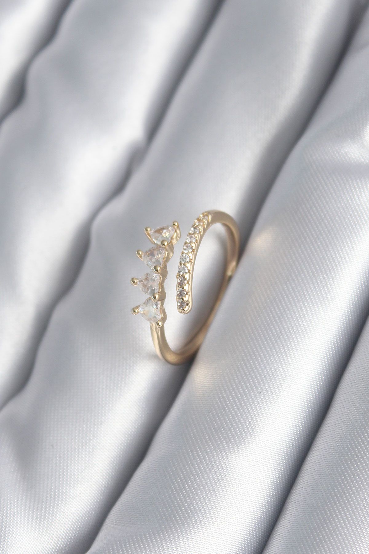 Pirinç Gold Renk Kalp Zirkon Taş Detay Kadın Yüzük - TJ-BYK2987